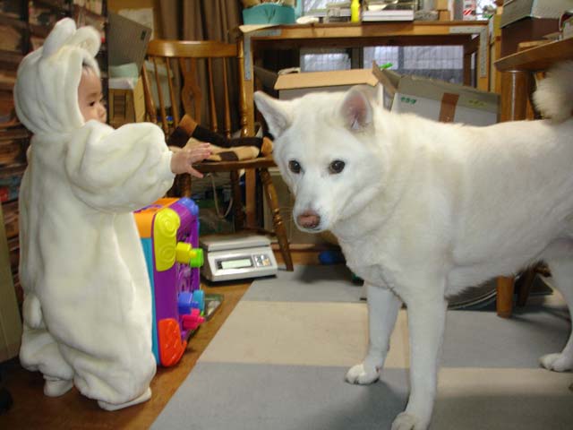 | 犬のご長寿ギネス記録(20歳何ヶ月からしい)に挑戦中! と豪語するほど元気いっぱいで、ついこの間まで、お散歩中などにあったかたに、「まぁ真っ白、きれいねぇ!」といっていただけるほどだったのですが。そろそろほんとうに尾っぽがふたつに分かれてもおかしくないなぁと思っていたのですが。6月の頭ごろ、ちょっと具合が悪くなり、腎臓のおくすりをいただいて少し回復したのですが、やはり老齢には勝てなかったらしく、20日お昼ごろ、亡くなりました。弱ってくるのもゆっくりで、ほんとうに最後のさいご近くまで、歩けたし、食べることもできました。歯もぜんぶあったし、目もちゃんと見えてたし、ごくごく最後までウンチやオシッコも自分でちゃんとそれなりのところにいってできました。ほんとうに丈夫で頑丈でした。だから、ずっと、家族といっしょにいられました。とうとう立ち上がれなくなって、このままだと点滴かなぁ、といっていた日、うつらうつらした、そのまんま、とうとう目がさめなくなったような具合ですから、メチャ自身も、きっと、そんなに苦しかったりつらかったりはしなかったと思います。いまごろは、天国で、なつかしいチャイたちにも、あってることでしょう。かわいがってくださったみなさん、どうもありがとうございました。メチャ、ありがとうね。 | |